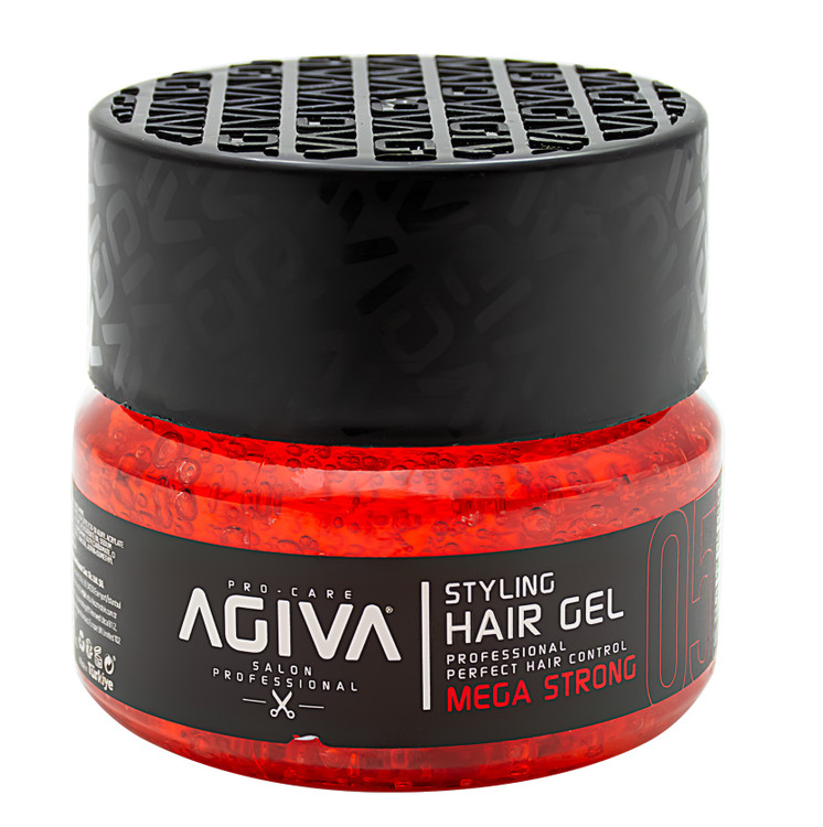 ژل حالت دهنده مو آگیوا Agiva شماره 05 مدل mega strong رنگ قرمز دارای قدرت نگهدارندگی 5 از 6 و کنترل بالا با ماندگاری بلند مدت می باشد